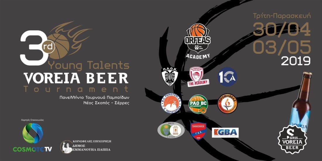 Ο Ορφέας Νέου Σκοπού και η Κοινωφελής Επιχείρηση του Δήμου Εμμανουήλ Παππά διοργανώνουν το 3ο Πανελλήνιο Τουρνουά Παμπαίδων με την ονομασία 3rd Young Talents VOREIA BEER Tournament.