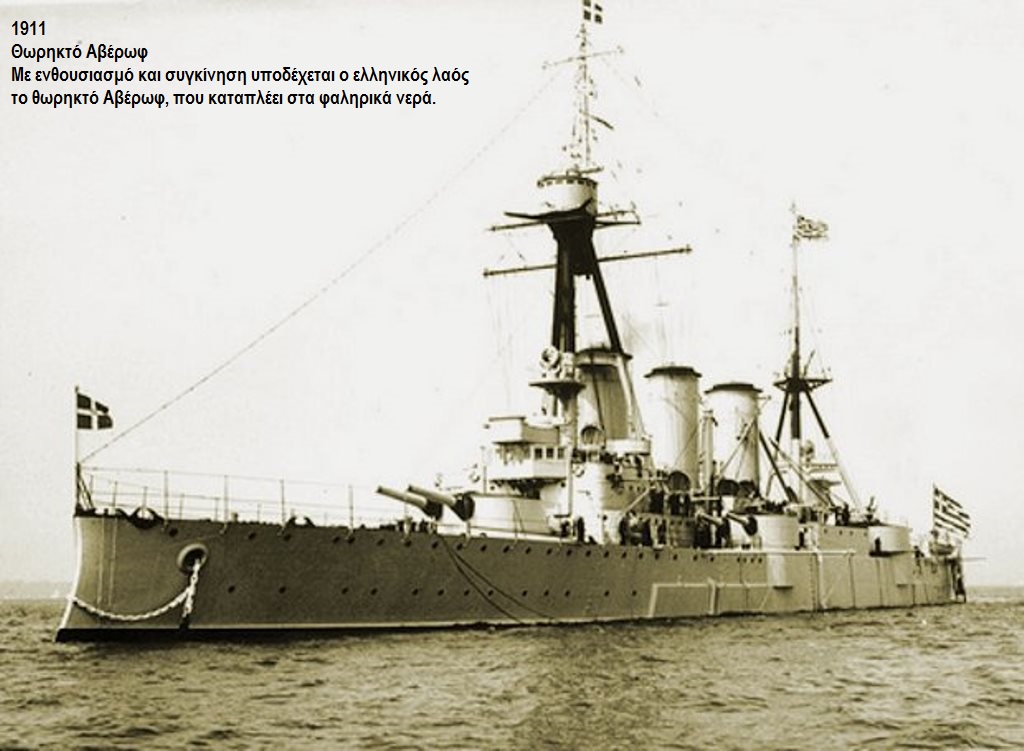 Με ενθουσιασμό και συγκίνηση υποδέχεται ο ελληνικός λαός το θωρηκτό Αβέρωφ, που καταπλέει στα φαληρικά νερά.