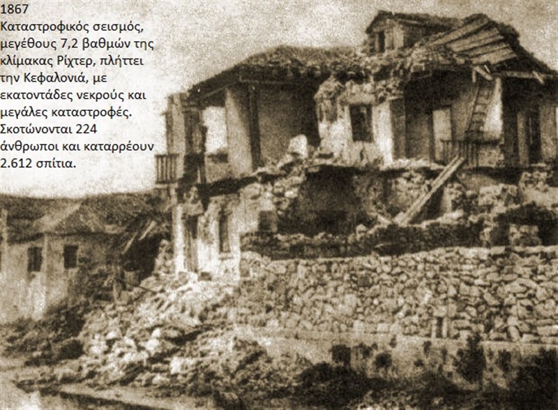 Καταστροφικός σεισμός, μεγέθους 7,2 βαθμών της κλίμακας Ρίχτερ, πλήττει την Κεφαλονιά (4 Φεβρουαρίου με το νέο ημερολόγιο), με εκατοντάδες νεκρούς και μεγάλες καταστροφές. Σκοτώνονται 224 άνθρωποι και καταρρέουν 2.612 σπίτια.