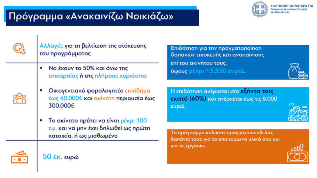 Στο πρόγραμμα «Ανακαινίζω» αλλάζουν τα όρια.