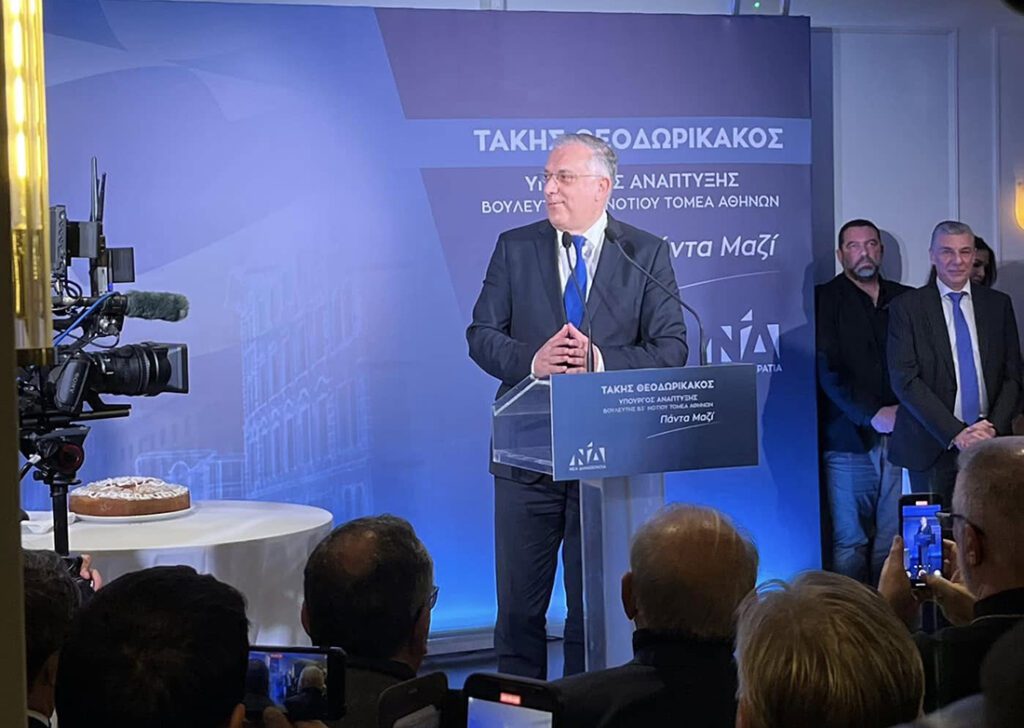 Πλήθος κόσμου έδωσε το «παρών» στην κοπή της πρωτοχρονιάτικης πίτας του πολιτικού γραφείου του υπουργού Ανάπτυξης Τάκη Θεοδωρικάκου, που πραγματοποιήθηκε στο Golf Γλυφάδας.