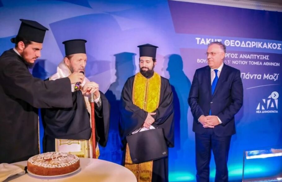 Πλήθος κόσμου έδωσε το «παρών» στην κοπή της πρωτοχρονιάτικης πίτας του πολιτικού γραφείου του υπουργού Ανάπτυξης Τάκη Θεοδωρικάκου, που πραγματοποιήθηκε στο Golf Γλυφάδας.