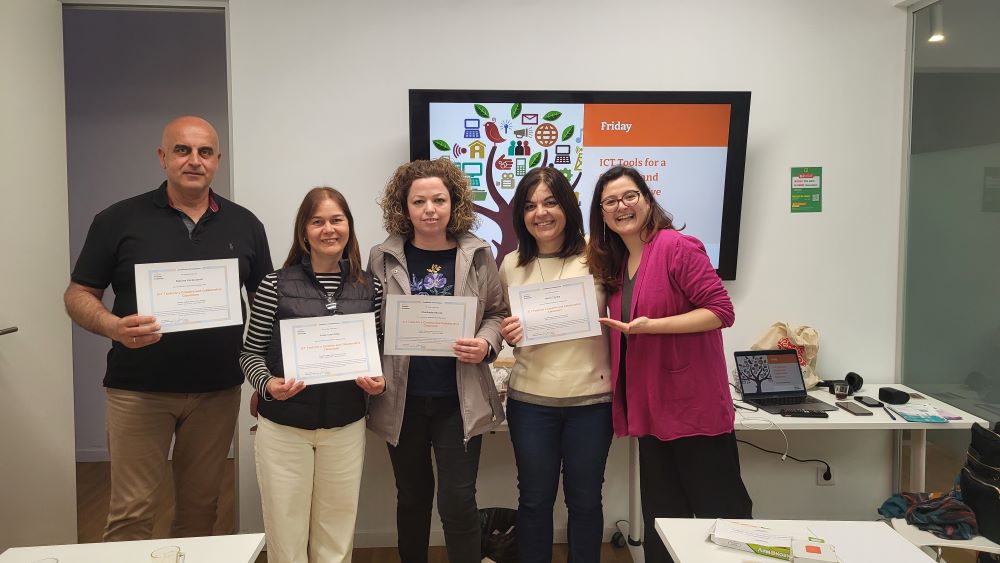 H έναρξη των κινητικοτήτων έγινε με τη συμμετοχή τεσσάρων εκπαιδευτικών του σχολείου μας, στο επιμορφωτικό σεμινάριο “ICT Tools for a Creative and Collaborative Classroom”, το οποίο έλαβε χώρα στη Λισαβόνα της Πορτογαλίας από τις 24 έως τις 30 Μαρτίου 2025. Στην επιμόρφωση οι εκπαιδευτικοί απέκτησαν πολύτιμες γνώσεις και εμπειρίες στον τομέα της ψηφιακής εκπαίδευσης και της ενσωμάτωσης ψηφιακών εργαλείων στην εκπαιδευτική διαδικασία.