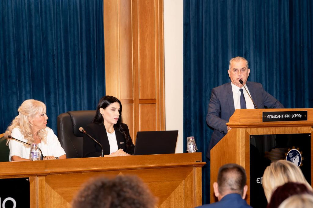 Στην εκδήλωση απηύθυναν χαιρετισμό ο Πρόεδρος του Επιμελητηρίου Σερρών, κ. Αθανάσιος Μαλλιαράς, το Μέλος του Δ.Σ. του Επιμελητηρίου Σερρών και Οικονομική Επόπτρια της ΕΕΔΕΓΕ, η κα Ελένη Τσιαπάρα, ο Πρόεδρος του Επιμελητηρίου Χαλκιδικής και Α’ Αντιπρόεδρος της ΚΕΕ, κ. Γιάννης Κουφίδης, ο Πρόεδρος του Επιμελητηρίου Ηρακλείου, κ. Ευάγγελος Καρκανάκης, καθώς και ο Αντιπεριφερειάρχης Σερρών, κ. Παναγιώτης Σπυρόπουλος.