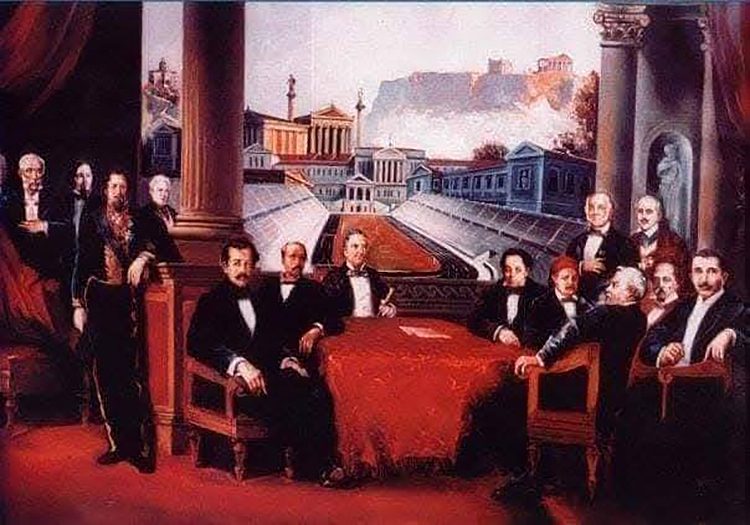 Εθνικό Μετσόβιο Πολυτεχνείο Αθηνών. Έργο των Μετσοβιτών Γεωργίου Αβέρωφ, του Νικολάου Στουρνάρα και του Μιχαήλ Τοσίτσα, με σχέδια του Λύσανδρου Καυτατζόγλου (1878).