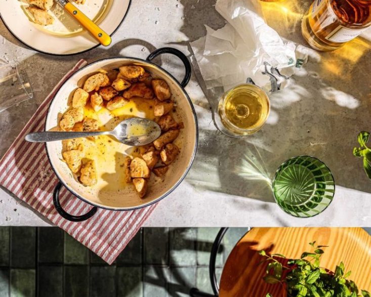 - Ζεσταίνουμε ένα σκέτο αντικολλητικό τηγάνι σε μέτρια προς δυνατή φωτιά και «ψήνουμε» τα κυβάκια για 2-3 λεπτά από κάθε πλευρά, μέχρι να ροδίσουν εξωτερικά και να μαγειρευτούν εσωτερικά.