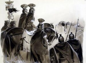 Η πρώτη Μάχη των Φιλίππων. Ο Μάρκος Αντώνιος και ο Οκταβιανός επικρατούν των δολοφόνων του Καίσαρα, Βρούτου και Κάσσιου. Ο Κάσσιος αυτοκτονεί.