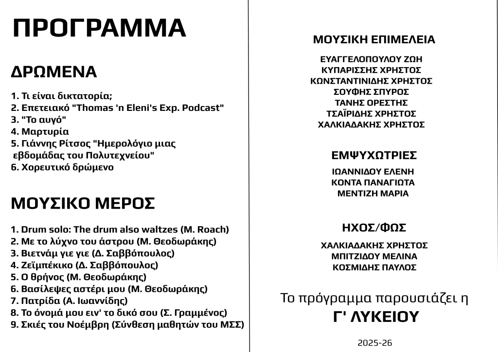 Μουσικό Σχολείο Σερρών: Πρόγραμμα γιορτής 17 Νοέμβρη 2025