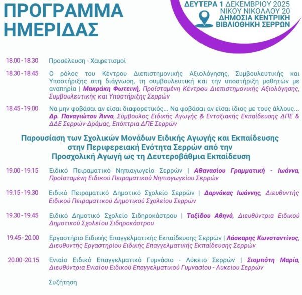 Ηλιαχτίδα | Ημερίδα με αφορμή την Παγκόσμια Ημέρα Ατόμων με Αναπηρία, με θέμα: “Ειδική Αγωγή και Εκπαίδευση στην ΠΕ Σερρών: Πραγματικότητα και Προοπτικές”