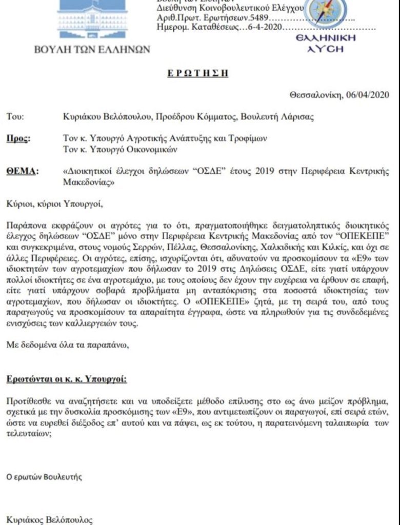 Όπως χαρακτηριστικά αναφέρει, σε όλη τη χώρα ελέγχονται 7.000 ΑΦΜ του ΟΠΕΚΕΠΕ από την ΑΑΔΕ και από αυτά, τα 3.500 ΑΦΜ είναι στον νομό Σερρών, με τον κ.Μπούμπα να αναρωτιέται αν και κατά πόσο αυτό είναι τυχαίο (;)