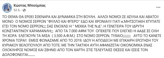 Αναλυτικά η ανάρτηση του Κώστα Μπούμπα: